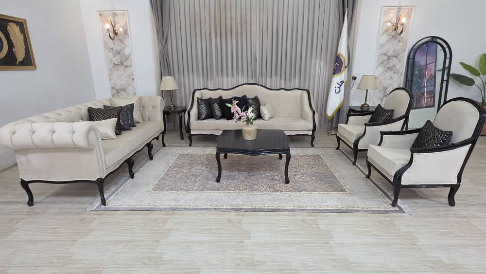 ست مبلمان نیوکلاسیک با رنگ چوب مشکی و پارچه کرم